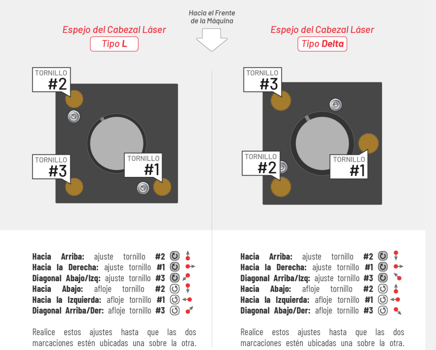 A continuación se explica cómo es el movimiento que realiza cada uno de los tornillos de ajuste y cómo manipularlos para realizar una calibración exitosa https://www.youtube.com/watch?v=dIDVQLHGLrE&t=7s Los tornillos de ajuste 1, 2 y 3 del primer y ...