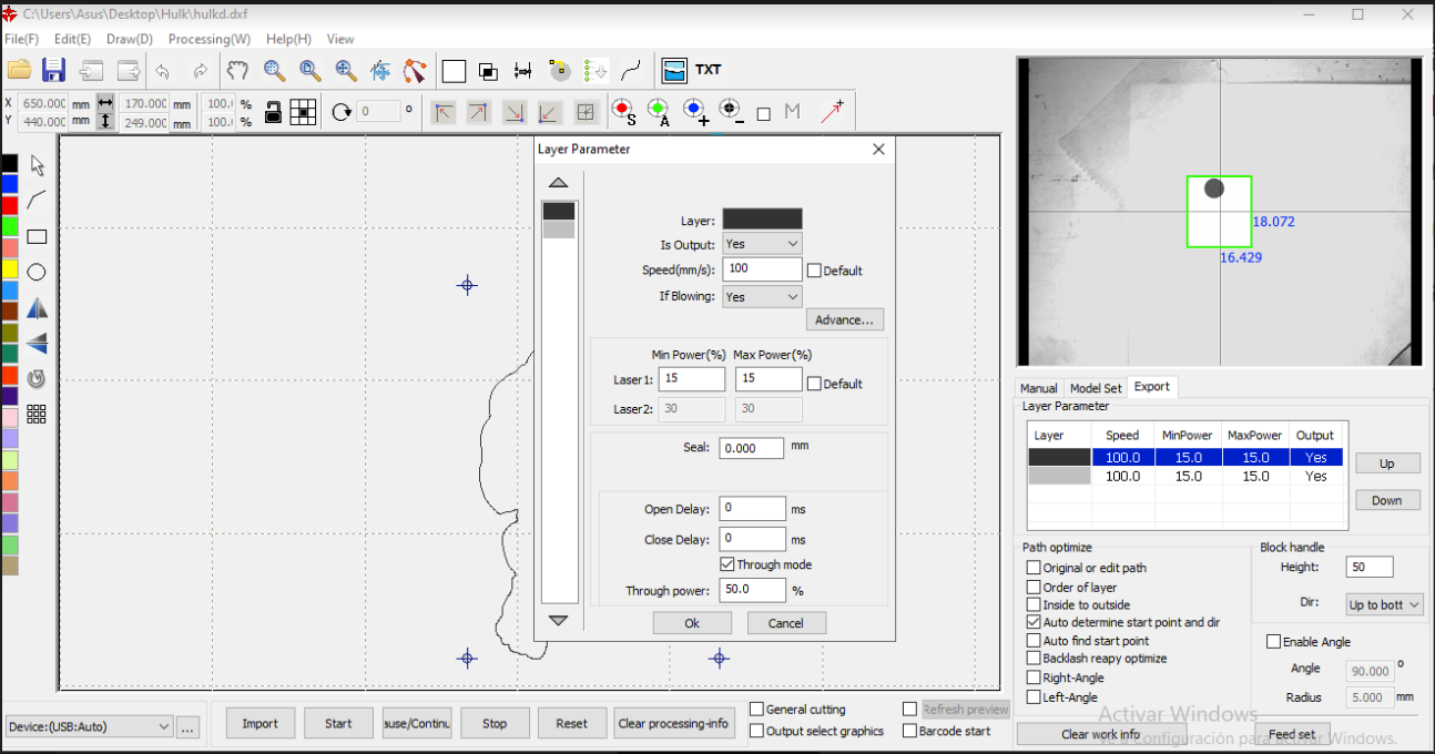1. Las dimensiones de los patrones no estan acorde a las dimensiones configuradas en el software2. La dimensión del área de corte no está acorde a la dimensión configurada en el software.3. La cámara está ubicada en un patrón equivocado y se direcciona hacia el lado contrario del área de trabajo.