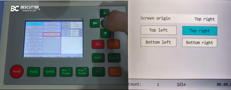 Si el vector o la imagen está inversa puede cambiar desde la máquina ingresando al menú screen origin y seleccionar la opción Derecha arriba “Top right”