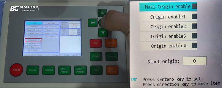 Ingrese al menu de la máquina presionando el botón Z/U o menú, luego ingrese al submenú “origin set+” y deseleccione la opción “multi origin enable”