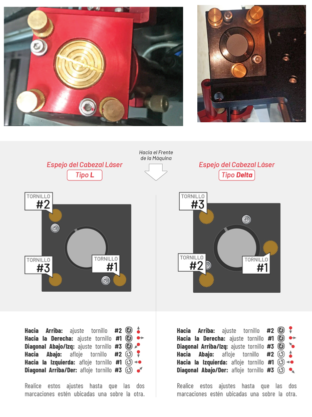 La trayectoria del láser debe ser ajustada cada vez que se realice un mantenimiento, cambio de espejos reflexivos o reemplazo del tubo, de no ser así, la calidad del corte se verá afectada e incluso se pueden causar daños en el lente.