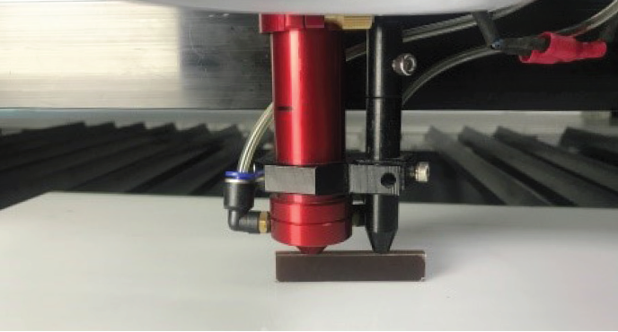 Paso 7: Utilice la guía para establecer la altura entre el material de corte y la boquilla del cabezal, como se muestra a continuación: