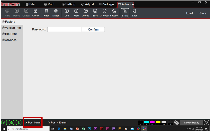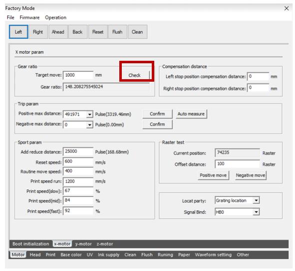 Paso 3: Presione “Check” para verificar el desplazamiento en el eje X, puede observar el movimiento de X en la parte inferior izquierda del software Imaxcan, esta debe alcanzar el numero 1000, Imagen 3.