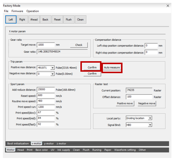 Paso 4: Haga clic en la casilla “Auto measure” y presione “Confirm” cuando el carro se ubique en el limite derecho del eje X, imagen 4.