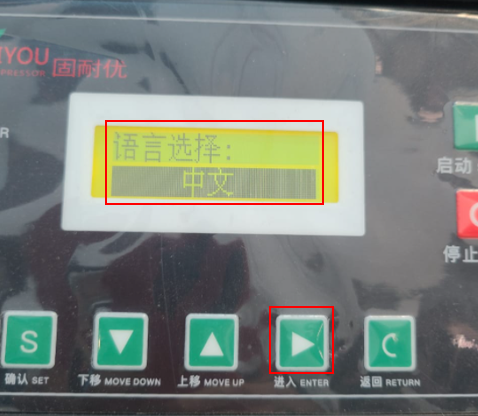 3. Presione "Move down" hasta que vea la siguiente pantalla y presione "Enter"