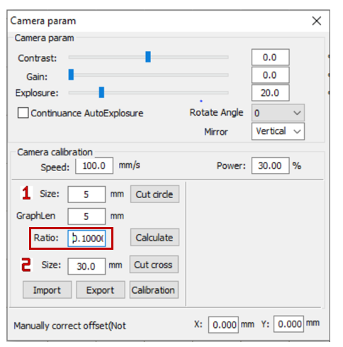 Note: If the camera still recognizes different results, press the box “Camera para and calibration” and enter the value 0.1 in the box “Ratio”.
