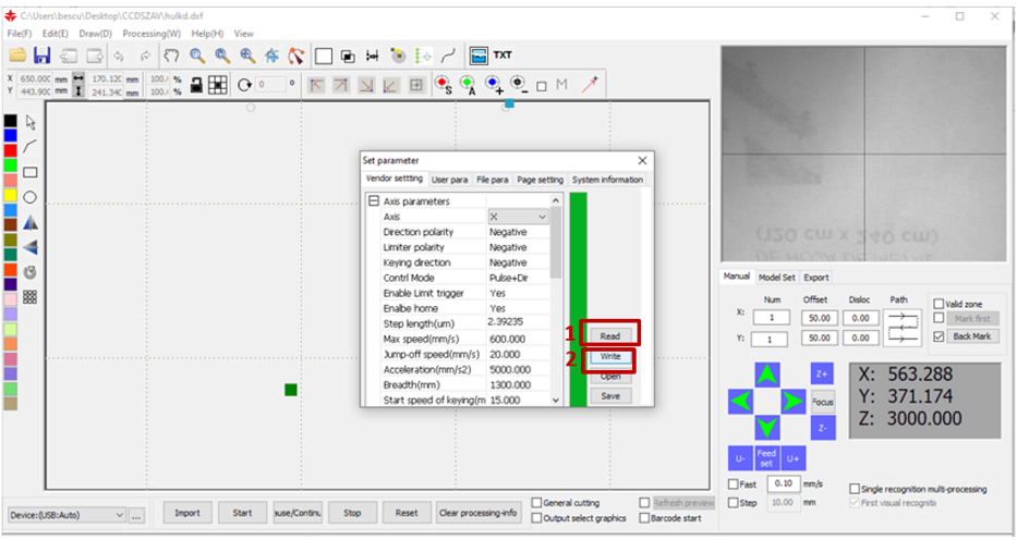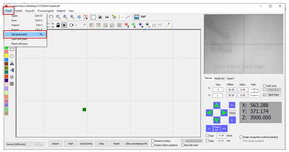 Step 1: Configure the initial parameters of the X and Y axes, to do this, locate the “File” tab and press “Set parameter”.
