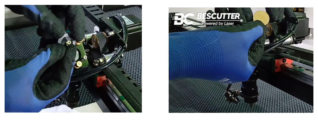 To see how the calibration is, it should be noted that the laser beam mark is in the center of the nozzle outlet. Set the maximum power to 10%, put transparent tape on the tip of the nozzle, and press the pulse button on the operation panel of the ...
