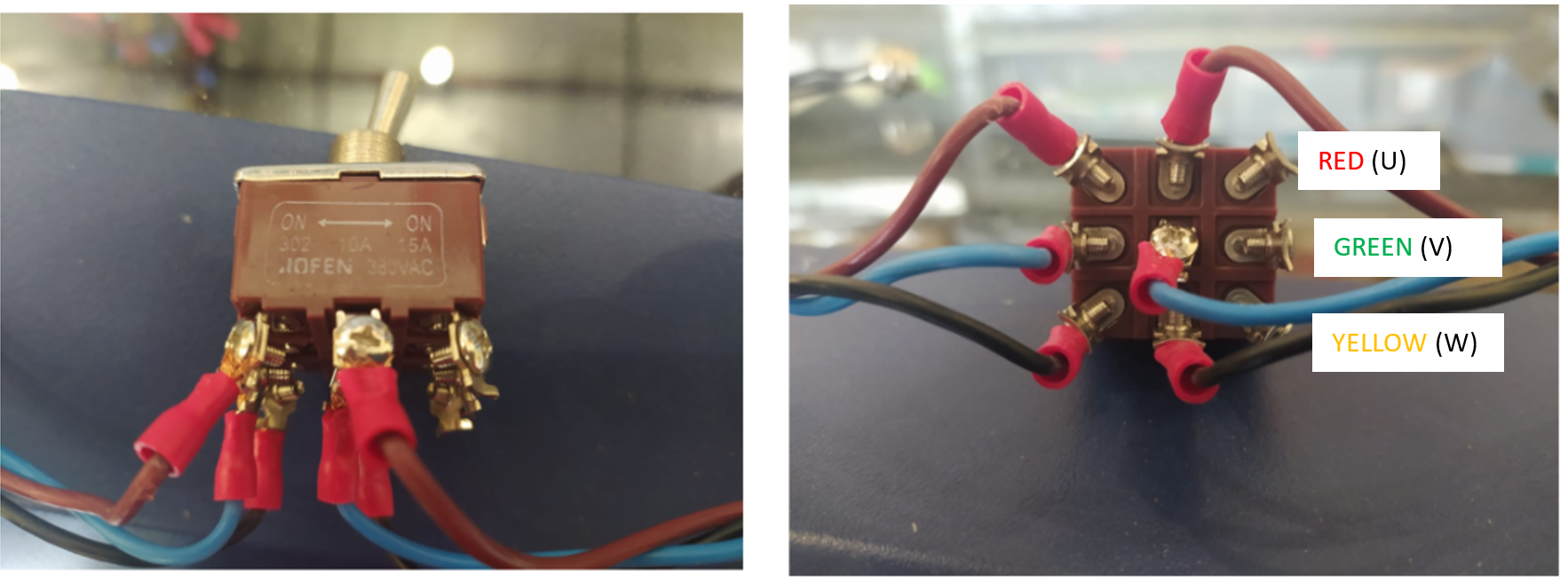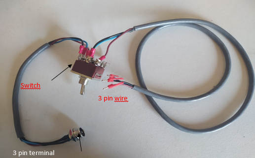 terminal, the two-position switch, and the wire with 3 black, brown, and blue