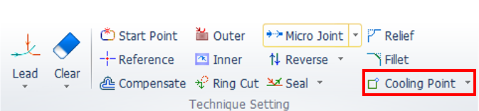 The cooling point helps the material to cool down the temperature during the cut. When it is cutting and it goes through the cooling point it is going to stop there and is going to keep blowing gas to cool down do the material and reduce the temperature.