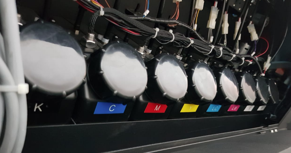 The primary cartridges are the tanks where the ink is deposited, generally located at the rear of the machine, each tank can hold one liter of ink, which is equivalent to one bottle.