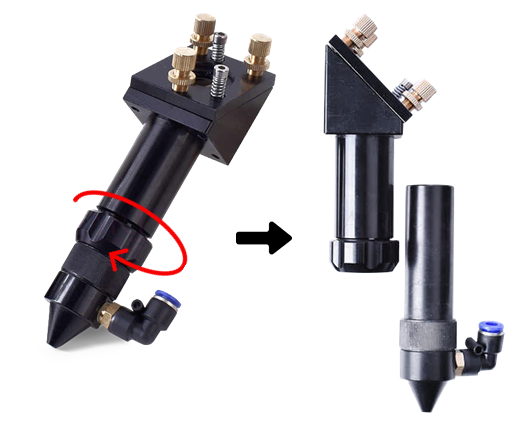 Turn the nut counterclockwise to release the Laser head barrel