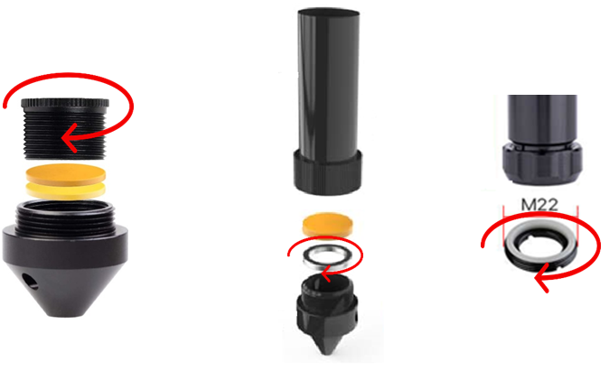 El cabezal se compone de varias partes, soporte del espejo, espejo, soporte del cañón, cañón, anillo para fijar el lente focal, lente focal, boquilla universal, y boquilla del aire Para desarmar el cabezal láser , siga estos pasos Paso 1 - Gire la ...