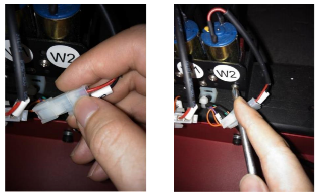 Step 1:Unplug the ink pump power terminal and remove the 2 screws on the mounting bracket. As shown below: