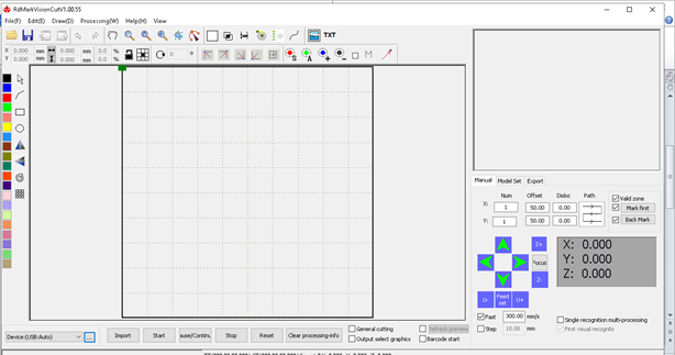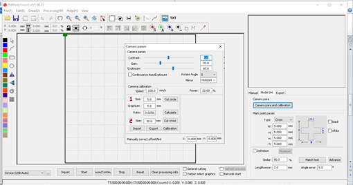 4. Before starting the calibration you need to place a piece a paper on the working table right under the laser head to perform the test on it. Enter de value on the size field, then click on cut circle, so the machine can cut it on the paper. It is recommended to measure the size of the circle the machine has cut because if there’s any difference between the size you entered on the software and the actual size of the circle, you can indicate the real size on the GraphLen Field and click on Calculate. With this the software will define a ratio and the camera will recognize the exact measure.
