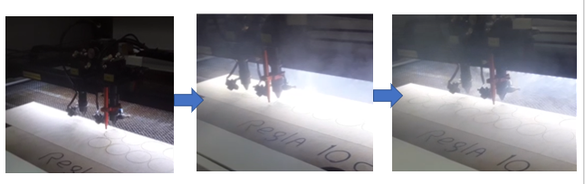 To see how the calibration is, we must observe that the mark of the laser beam is in the center of the hole in the laser head, if the two marks overlap but are above the center, it means that the height of the tube is above of the height of the laser ...
