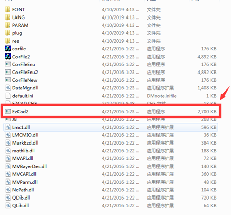 Dentro de la carpeta que copiaste en el escritorio, hay una subcarpeta que tiene nombre EZCAD 2.9 0 2.14, ingresa a la carpeta con doble clic y luego busca el achivo EZCAD2.exe