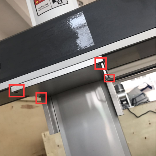 Instale la columna de elevación ajustando los tornillos a la base de la mesa de trabajo con ayuda de una llave Allen