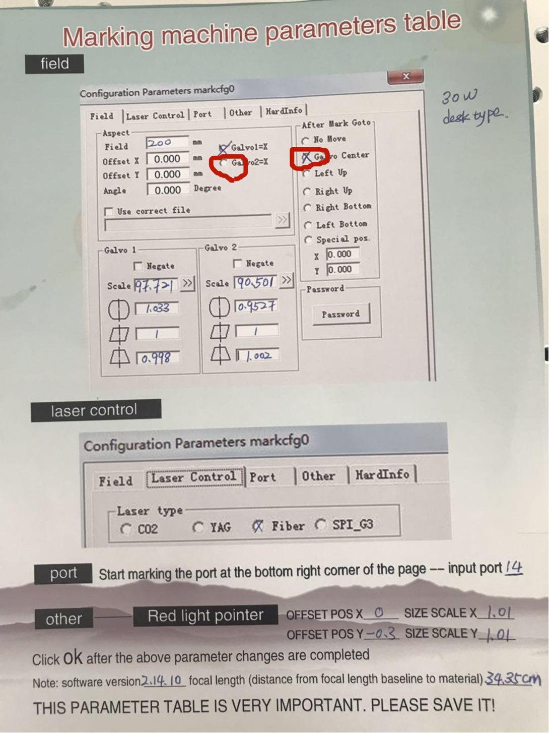 Despues de recibir la máquina marcadora Galvo, necesitas ensamblar la máquina, instalar el software en el computador y configurar los parámetros según la hoja de tabla de parametrización