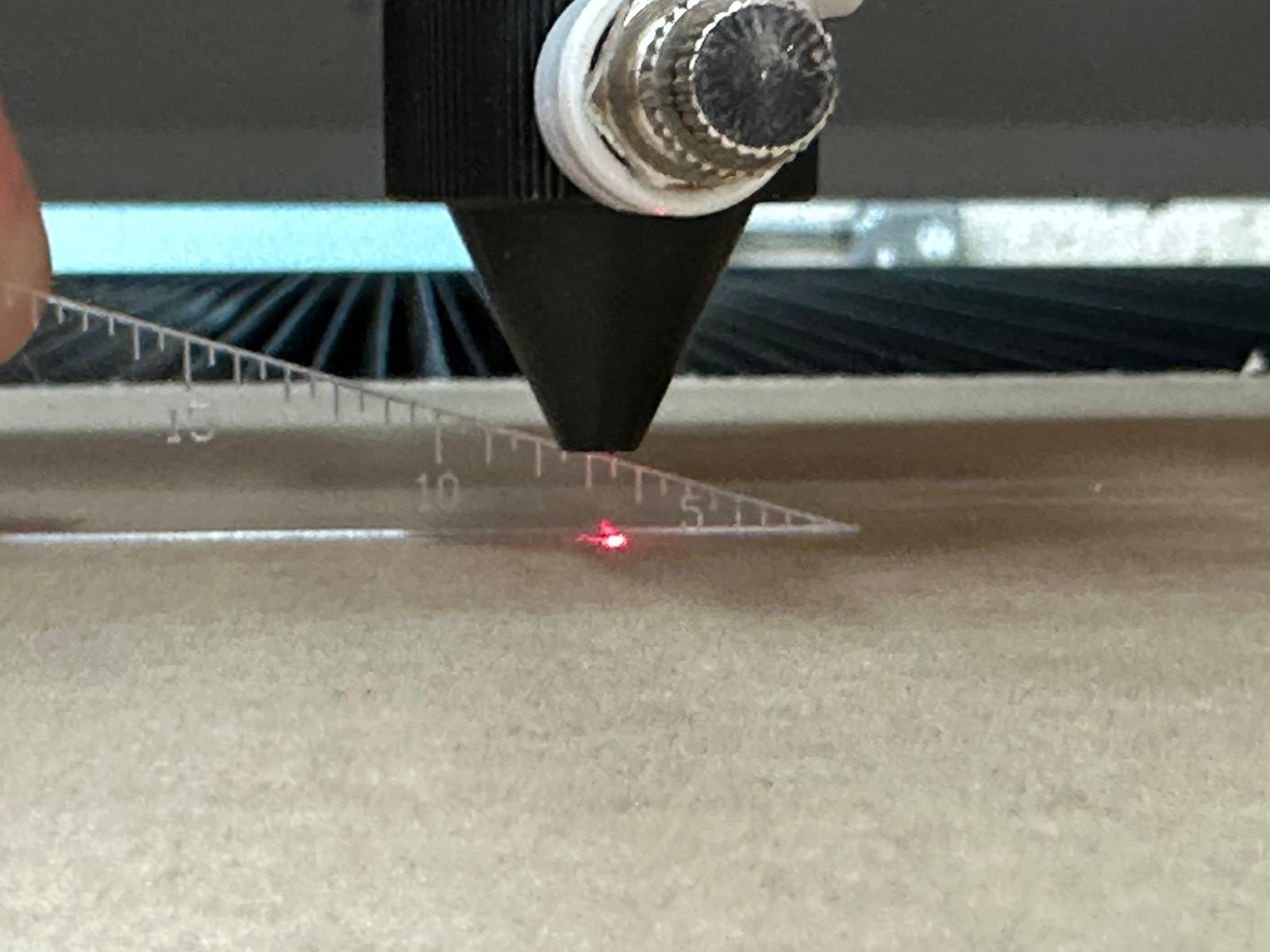 Use the square ruler to set the 7mm, distance from the tip of the nozzle to the material as the photo