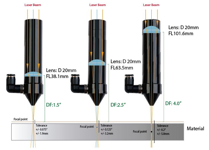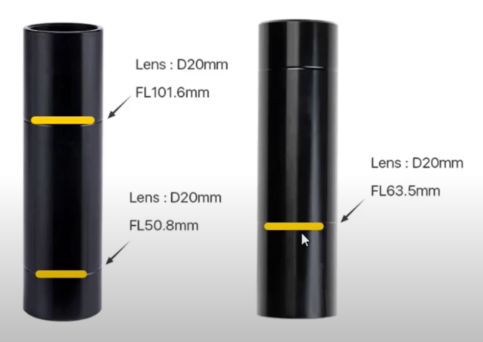 Different positions of the lens in the barrel Position of the lens inside the barrel,