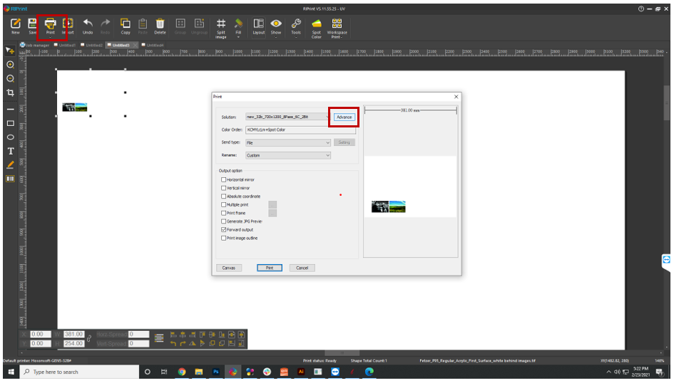 Paso 1: Cargue un archivo, presione la casilla “Print” y haga clic en la pestaña “Advance”.