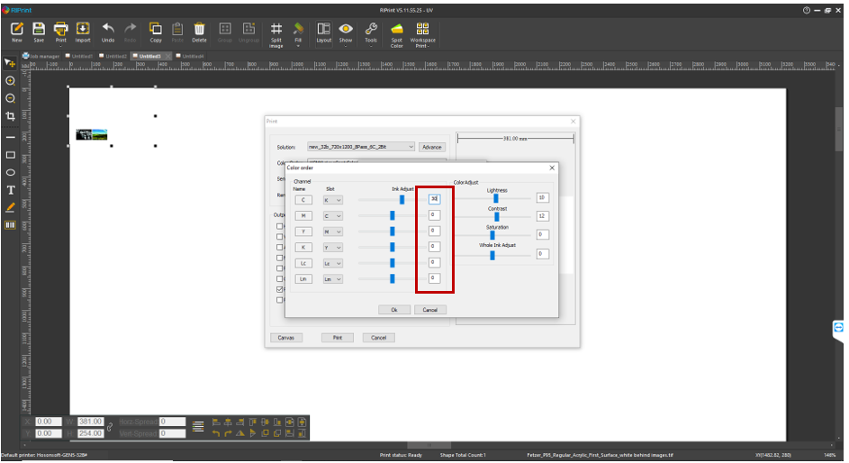 Paso 3: Modifique los valores de cada color CMYKLcLm, según la intensidad de color requerida, luego presione “Ok”.