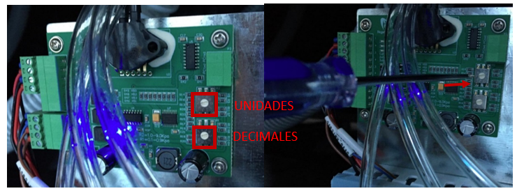 Step 1: To modify the potentiometers and achieve the appropriate negative pressure, vary the potentiometer with a flat screwdriver until the desired value is reached, the upper potentiometer determines the units and the lower potentiometer the decimals.