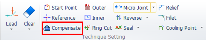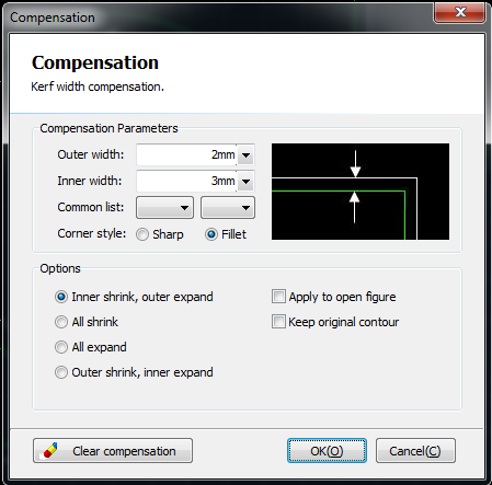 2. Realice click en "Compensate" y coloque la anchura (Width) que necesita compensar en el corte de acuerdo a su necesidad: