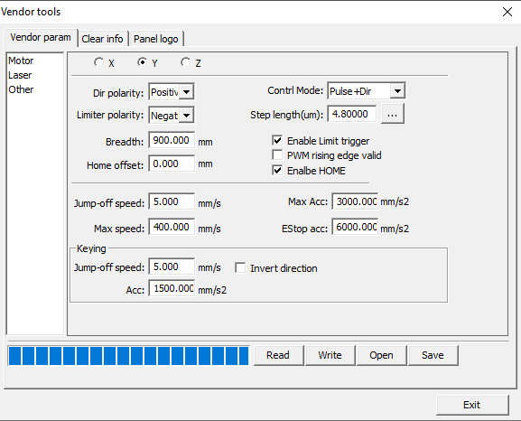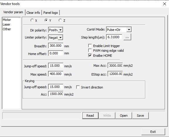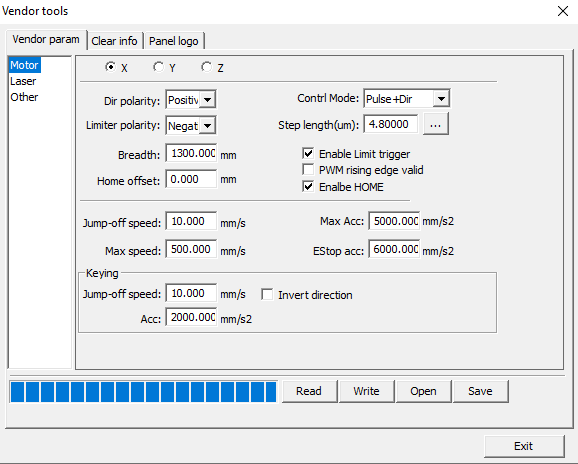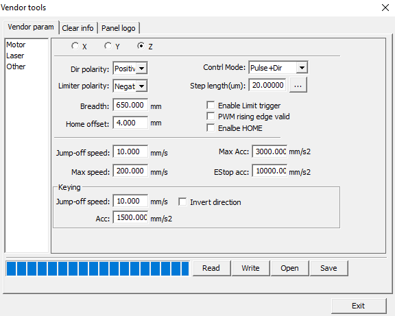 of movement of the machine in the z axis, when changing the Ruida RDC6442C