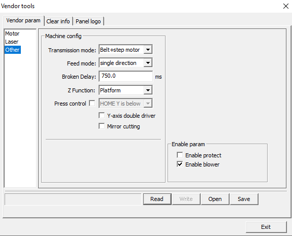 load the vendor parameters to the machine