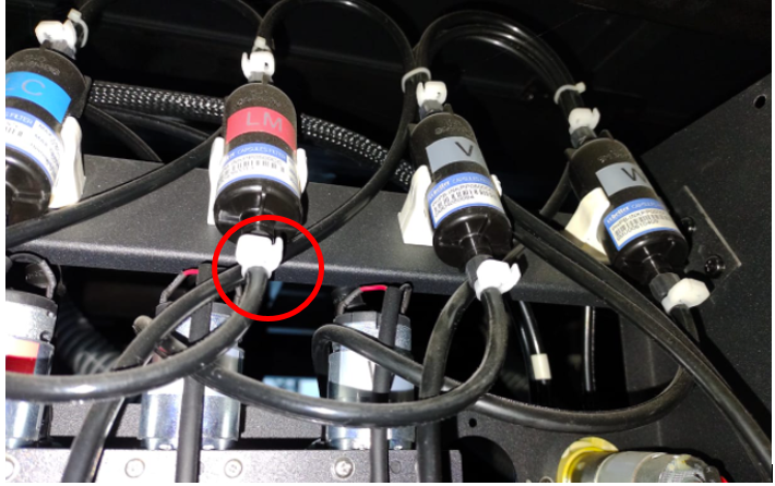 3. Chequea si los filtros de tinta están bloqueados, desenrosca el conector de la parte inferior, presiona el botón INK RESET para ver si hay desbordamiento de tinta, de lo contrario reemplace la bomba.
