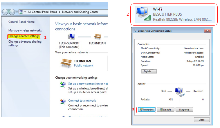 1. Go to control panel / Network and Internet / Network and Sharing Center/ configure the connection Wi-Fi connection, then press right-click and then select properties