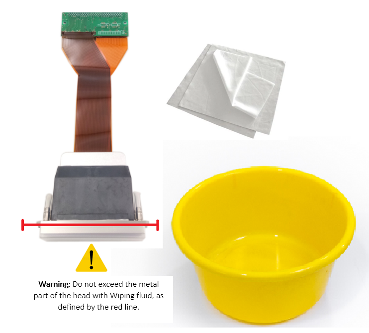 Step 5: Pour a thin layer of UV Wiping fluid into a cup, place an antistatic cloth on the bottom and place the head on top of the cloth. The cleaning liquid should NOT exceed the metal part of the head, let it soak for 24 to 72 hours.
