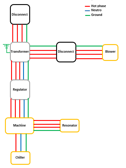 This simple diagram will help you to understand how to make the connections for the electric and power part for the machine:
