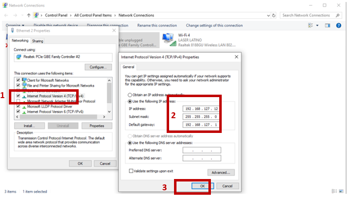 Step 4: Locate the option “Internet Protocol Version 4 (TCP / IPv4)”, double click, enter the following values and press “OK”:
